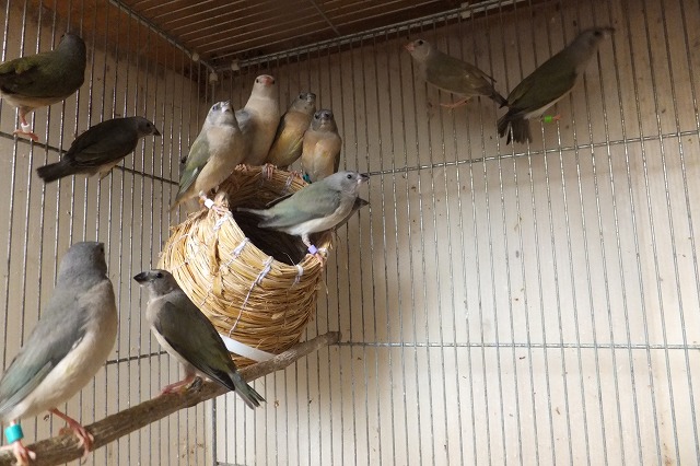ブルー・赤目胡錦鳥の自育繁殖を目指しています。
