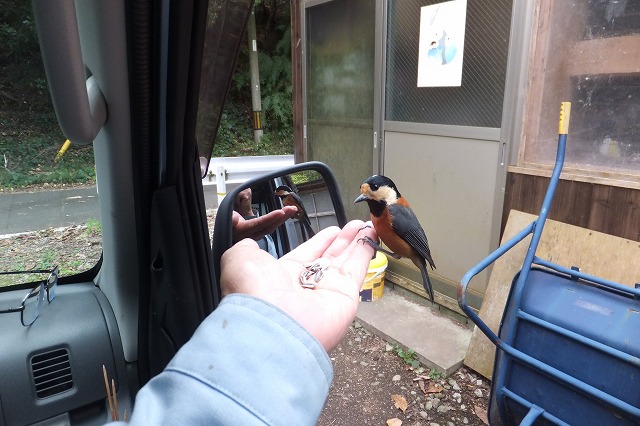 (出迎えてくれるヤマガラにヒマワリの種を与えています!2024.11.25撮影)